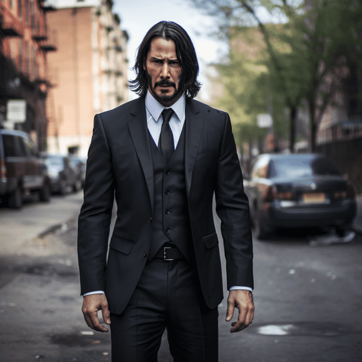 Еще один простой образ на Хэллоуин для мужчин - Джон Уик из одноименного фильма с Киану Ривзом. Нужен лишь идеально сидящий классический костюм, желательно черного цвета, шикарная шевелюра и грозный взгляд.