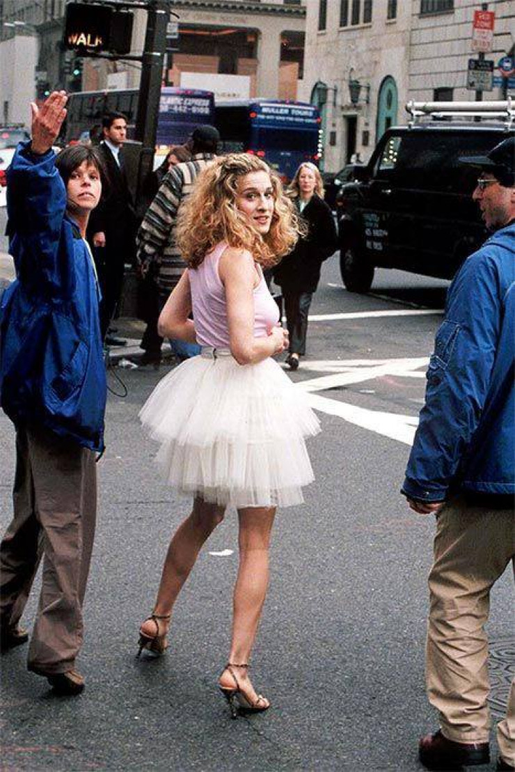 Другой популярный образ для девушек можно считать современной классикой. Костюм Кэрри Брэдшоу из "Секса в большом городе" (и его продолжения "И просто так...") несложно воплотить в жизнь: возьмите юбку-пачку, базовую майку или топ, любимые туфли, и образ готов. Завершить его можно легким макияжем и пышной копной волос. К слову, на помощь всегда может прийти парик.