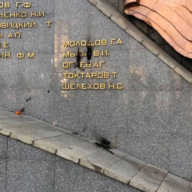 Еще раз памятник пострадал уже в 2021 году, когда неизвестные сожгли искусственные цветы, лежащие у Вечного огня, и подпалили буквы имен героев войны.