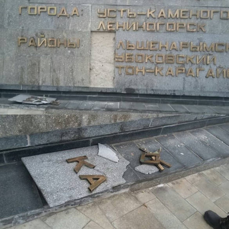 Вандалы повредили мемориал Славы, установленный в честь героев Великой Отечественной войны, в Усть-Каменогорске. Инцидент произошел в канун Нового года. На мемориале оторвали буквы и повредили облицовочный камень.