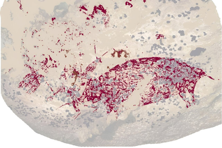 Наскальное изображение выполнено красной краской и показывает большое животное, напоминающее свинью, а также три человеческие фигуры. Возраст находки ученые оценили в 51,2 тысячи лет.