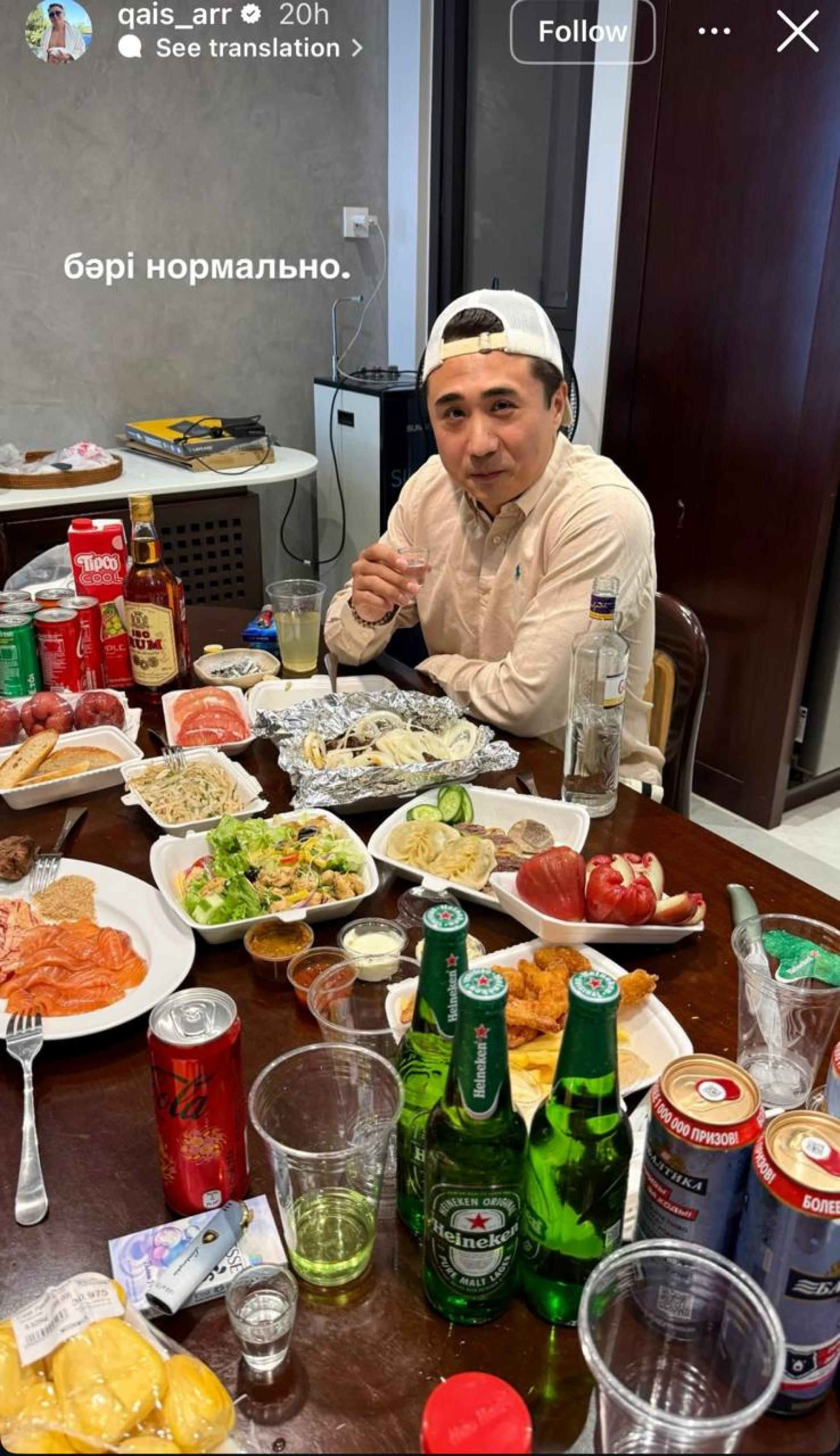 Сначала Камза выложил сторис с фотографией, на которой он позирует за накрытым столом. Снимок сопровождала короткая подпись: "Все нормально". Публикация вызвала активное обсуждение среди подписчиков, многие из которых восприняли её как попытку показать спокойное отношение к происходящему.