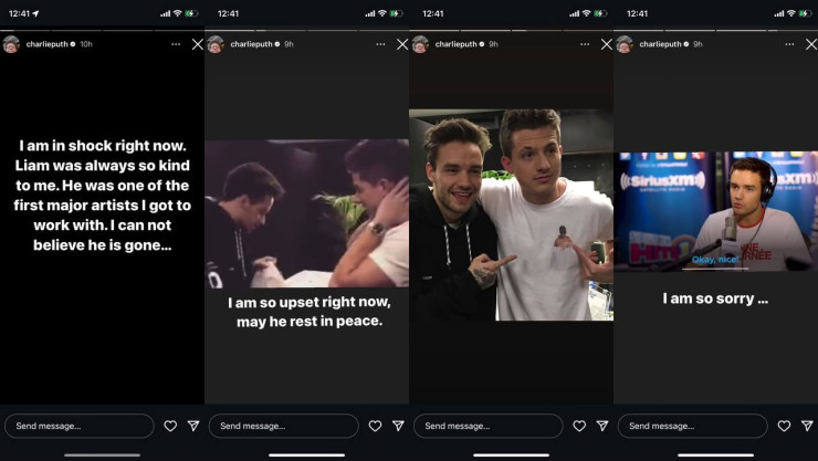 Смерть Лиама Пейна потрясла не только поклонников, но и многих звезд шоу-бизнеса, которые тоже спешат выразить свои соболезнования. Певец и автор песен Чарли Пут, который работал с Лиамом над его синглом "Bedroom Floor" в 2017 году, поделился в Instagram серией stories, посвященных его коллеге.