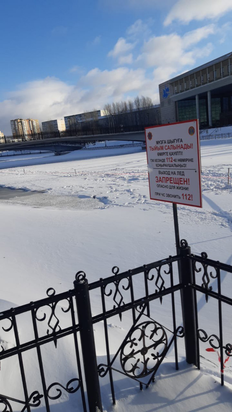 "Жителям и гостям столицы в связи с резкими изменениями погодных условий, потеплением и таянием льда, запрещается кататься на коньках вдоль спортивного комплекса "Барыс" реки Акбулак Алматинского района (возле спорткомплекса "Казахстан") по соблюдению требований безопасности на водоемах. Просим граждан прислушаться к данным рекомендациям во избежание происшествий! Берегите себя и своих близких", - отмечается в сообщении ДЧС Астаны.