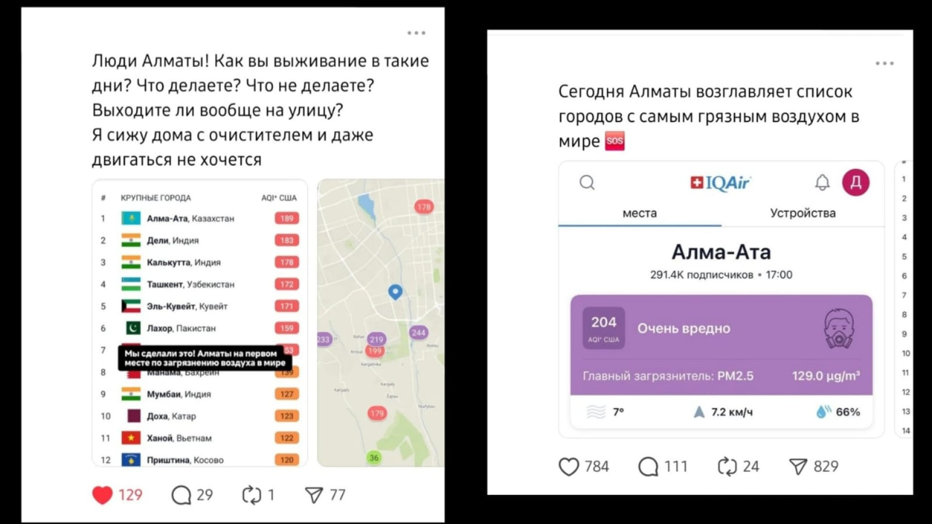 16 ноября Алматы занял первое место в мире среди самых грязных городов по данным IQAir. Это вызвало бурную реакцию в сети среди казахстанцев.