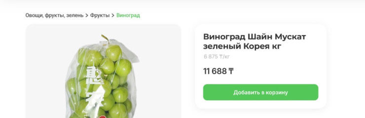 В одном популярном маркетплейсе мы нашли, что такой виноград продают за 6875 тенге за килограмм.