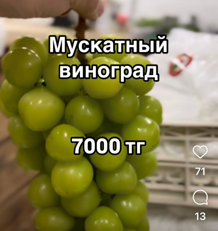 "В Алматы 5000 стоит", " У нас 11 300 - Астана", "В Караганде видела за 15 тысяч тенге сегодня килограмм", "До Тараза, видимо, этот тренд не дошел и это хорошо. Такой вид винограда у нас стоит 1400", - делятся люди в комментариях.
