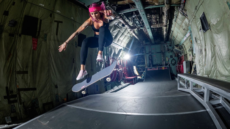 Для осуществления нового проекта ей потребовались высота 2750 метров, самолет Hercules C-130 из фильма "Форсаж-7" (2015), эксперт по прыжкам с парашютом из фильма "Миссия невыполнима: Последствия" (2018), парашют, скейт-парк для катания внутри самолета и грань для скольжения, установленная на самом краю его заднего люка.