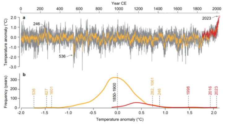 Ученые во главе с Яном Эспером из Майнцского университета сопоставили данные о температурах с июня по август 2023 года из проекта Berkeley Earth с данными инструментальных наблюдений за последние 170 лет, а также с результатами 15 реконструкций климата, сделанных на основе годичных колец деревьев. Неопределенность оценок таких реконструкций удалось снизить, откалибровав их по данным прямых наблюдений на метеостанциях с 1850 года.