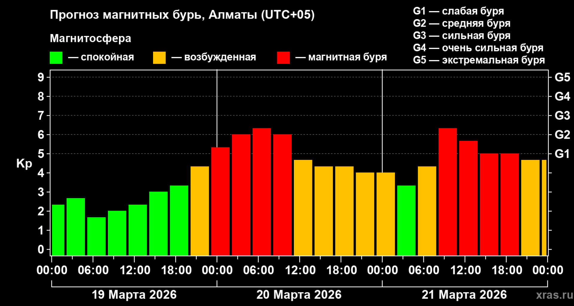 Согласно мониторингу, в Алматы вероятность магнитной бури достигает 85 процентов.