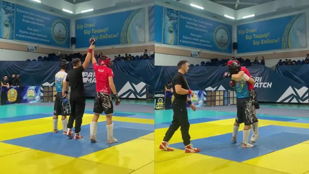 В свой TikTok-аккаунт 18-летний Ерназ Турсынбеков загрузил финал областного турнира по панкратиону, который проходил в Усть-Каменогорске. Так случилось, что в главном поединке соревнований встретились два друга, которые решили не бороться, а предоставили возможность случаю выбрать победителя. Судя по всему, в тот вечер судьба была на стороне Ерназа.