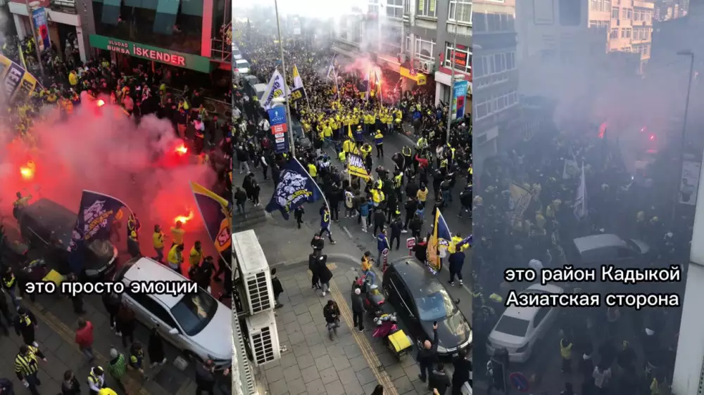 "Сегодня турецкая Суперлига, "Фенербахче" играет против "Галатасарая". Фанаты уже ходят, хотя сейчас время только 12 часов дня", - рассказывает на видео Бағлан.
