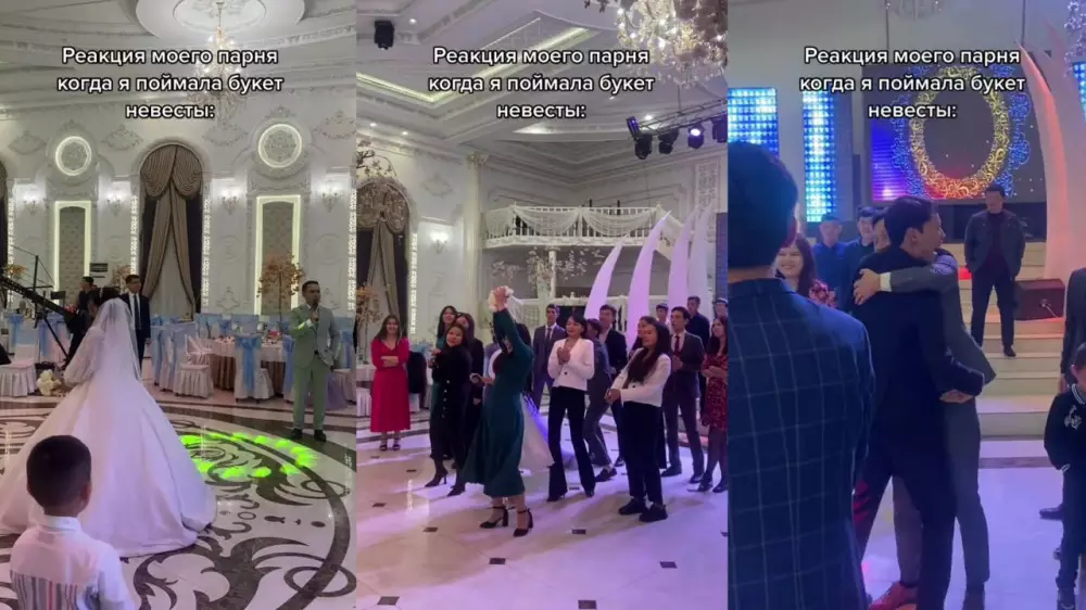 На видео букет поймала 19-летняя Акгулим Назарова. Однако, кажется, больше этому факту обрадовались ее парень и его друзья, тут же начавшие поздравлять молодого человека.