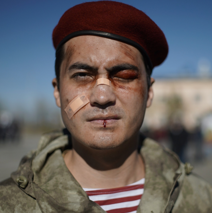 "Я могу с точностью сказать, что на данный момент, это мои самые тяжелые съемки. Именно физически. Потому что я нигде так не выдыхался, как в этой картине! Сама противоосколочная защита весит около 50 килограммов, это еще без обмундирования, а сам шлем весит 15 килограммов. При этом ты должен бегать, прыгать по пересеченной местности и драться – то еще испытание", – сказал Санжар Мади.