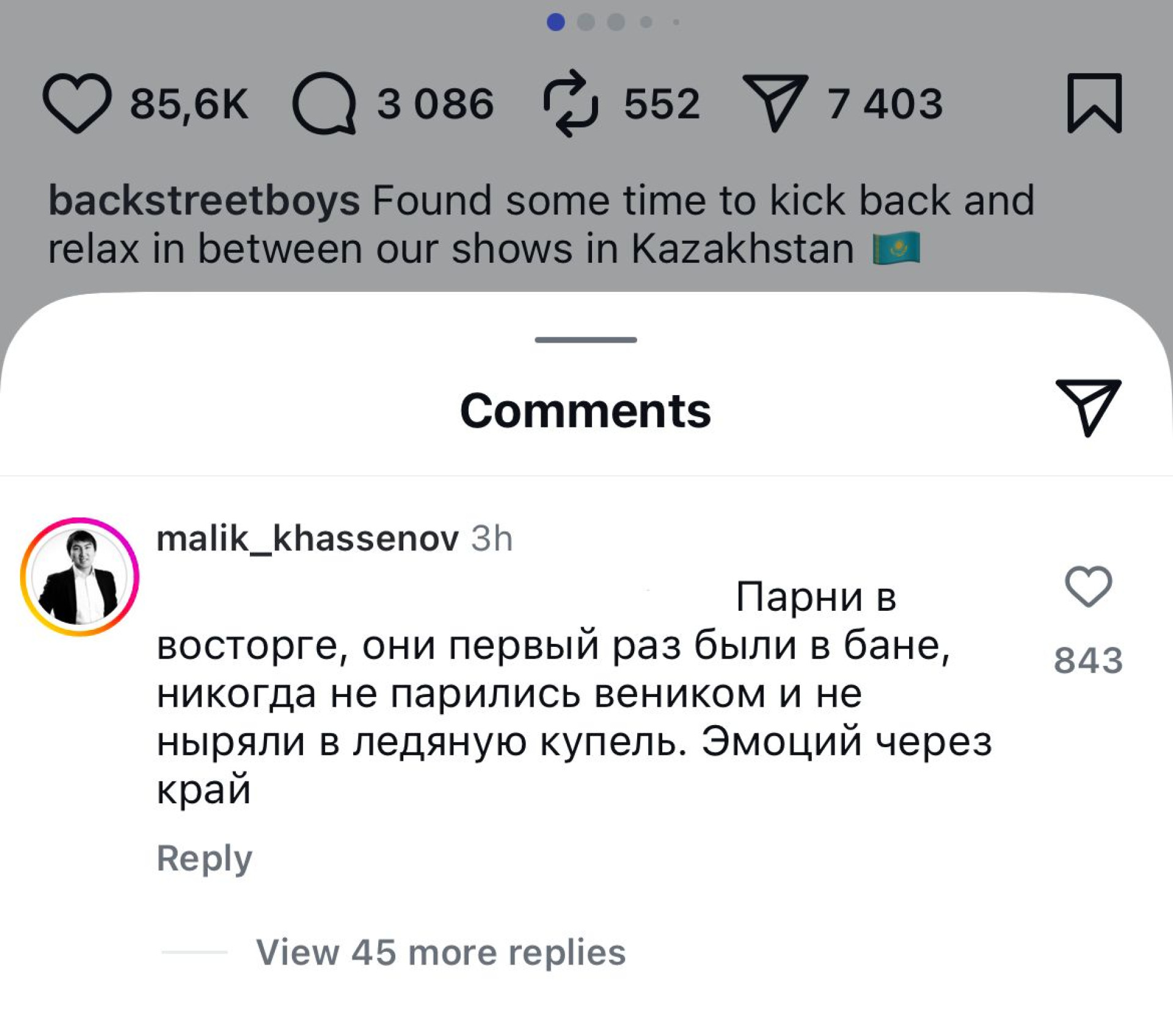 Ранее программа досуга Backstreet Boys в Казахстане уже становилась предметом обсуждений в сети. Перед концертом в Астане музыкантов встречали танцами прямо в аэропорту, а позже для них организовали необычную культурную программу — от посадки деревьев до уроков по игре на домбре.