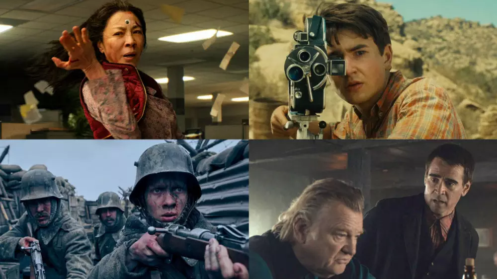 С небольшим отставанием - по 9 номинаций - лидируют фильмы "На Западном фронте без перемен" и "Банши Инишерина". Далее следует "Фабельманы" Стивена Спилберга с семью упоминаниями. Фильм "Элвис" заявлен в 8 номинациях. А вот фильм "Говорят женщины" затрагивает актуальные женские проблемы и может забрать главную награду вечера. Редакция Tengri Lifestyle ознакомилась со списком номинантов и рекомендует к просмотру следующие фильмы.