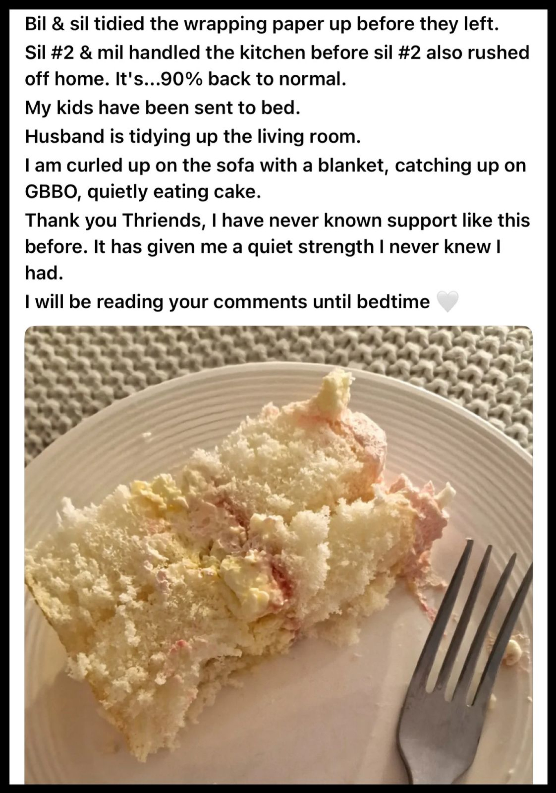По словам автора, все привыкли, что именно она организует семейные праздники, включая выпечку тортов. Но в этот раз она решила "держать границы" и полностью осталась в стороне.