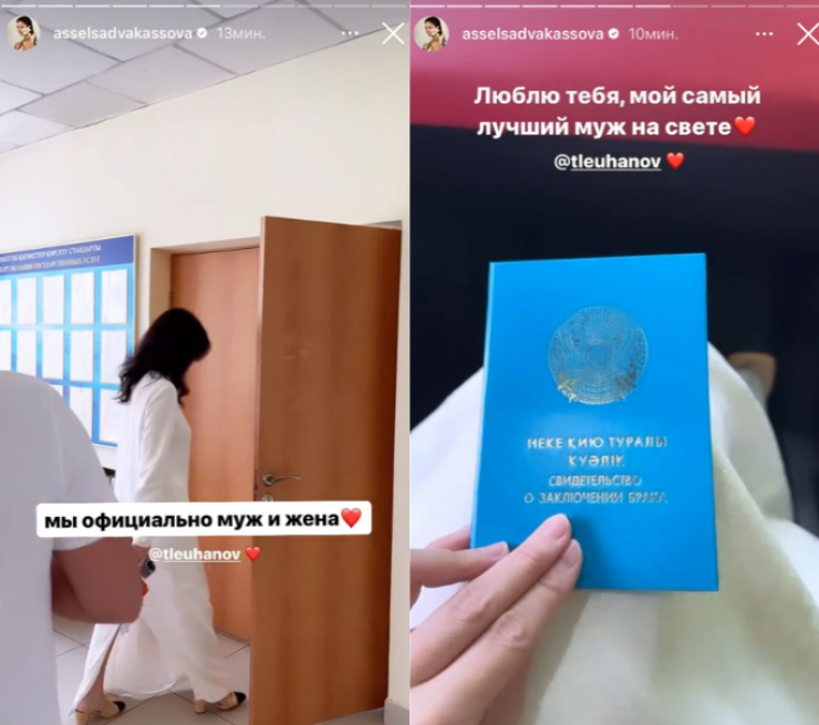 Церемония венчания Асель и Магжана прошла весьма скромно и без посторонних глаз. Судя по публикации, пара не стала устраивать пышное торжество, последовав примеру Ерке и Райма.