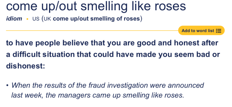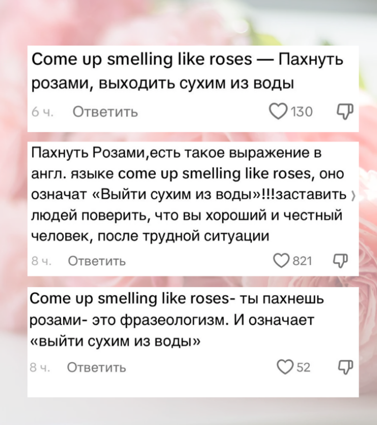 Однако пользователи сети провели свое лингвистическое расследование. Они обратили внимание на смысл идиомы и написали, что она означает. Как оказалось, в переводе на русский выражение звучит как "выйти сухим из воды".