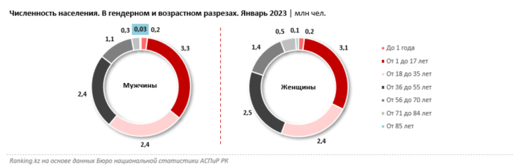 Детское население в Казахстане сохраняет гендерное неравенство. В возрасте 1–17 лет мальчиков в нашей стране больше на 5,8 процента. Мужское преимущество в численности сохраняется и в молодежной прослойке в возрасте 18–35 лет.