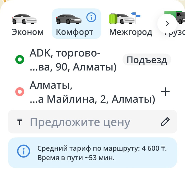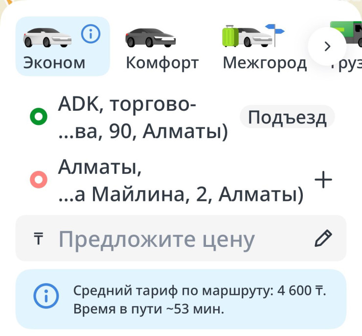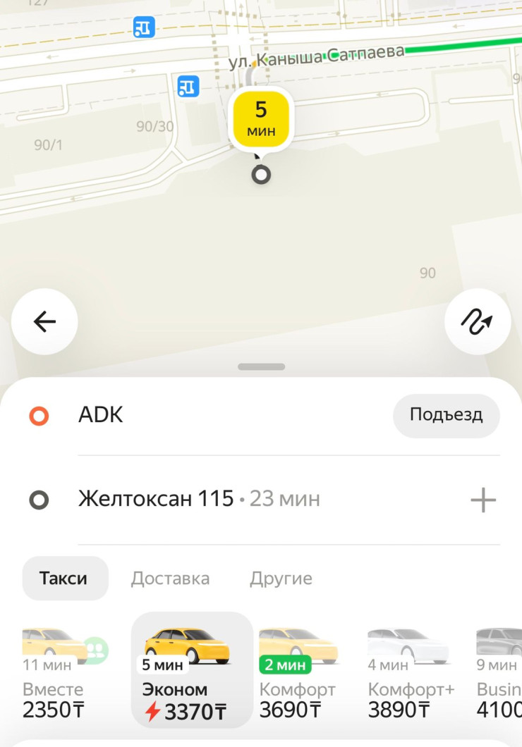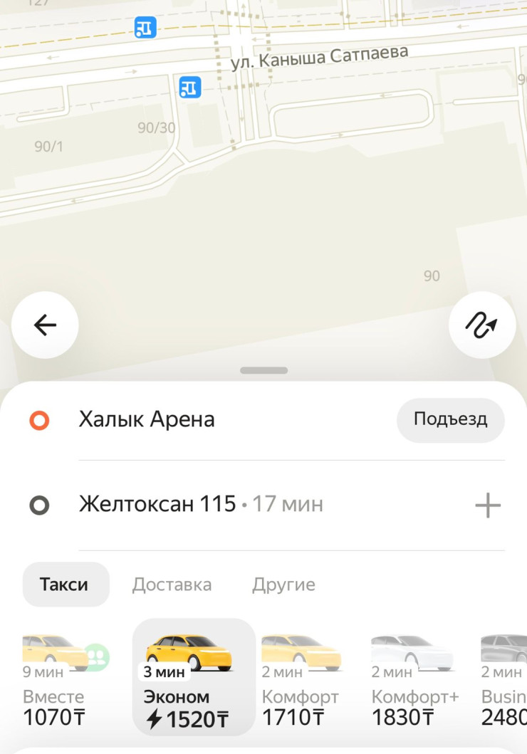 От Halyk Arena дешевле доехать до улицы Желтоксан, чем с ADK до той же локации.