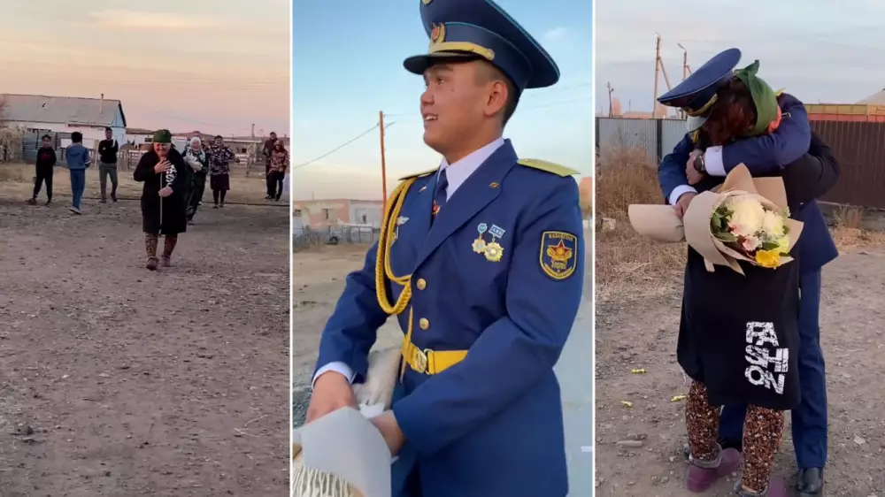 20-летний казахстанец Аян Жанмухамедов опубликовал в своем TikTok-аккаунте момент долгожданной встречи с мамой. Молодой человек в парадной форме и с цветами в руках возвращался домой после годовой службы в армии. На его глазах можно заметить слезы.