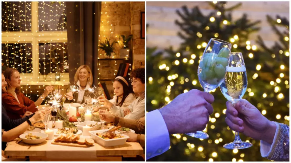 В солнечной стране на новогодний стол обязательно ставят на стол блюдо с виноградом, а во время боя часов каждый старается съесть 12 виноградин точно в такт ударам. Каждая ягода — новое желание. Если успеете, весь год будет удачным, полным приятных сюрпризов и неожиданных радостей.