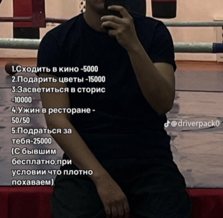 На рынке можно встретить услуги и по более приемлемым ценам. Так, пользователь TikTok под ником @driverpack0 опубликовал весьма интересный спектр предложений. Например, он готов бесплатно ввязаться в драку с бывшим парнем заказчицы, но при одном условии: после активности его нужно угостить "вкусным и плотным" ужином.