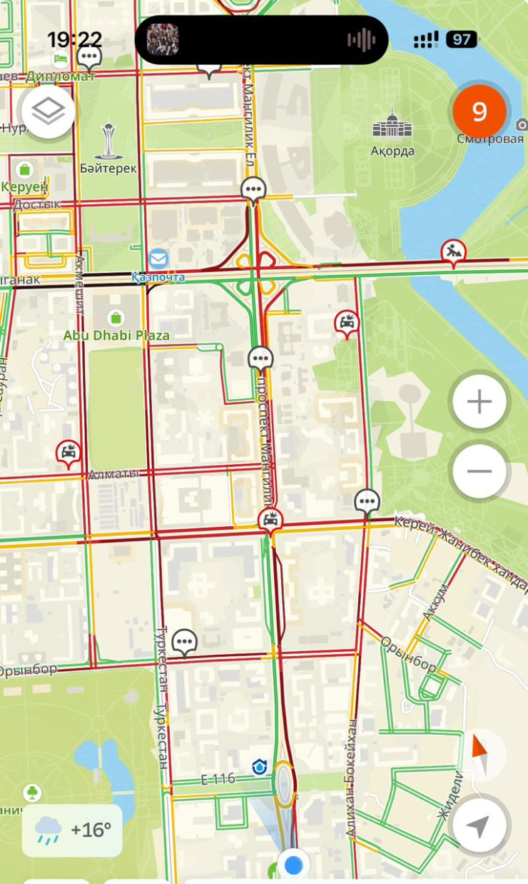 Местные жители выражают свое беспокойство и недоумение по поводу внезапного хаоса, который обрушился на их обычно спокойные улицы. Судя по карте, в городе наблюдается девятибалльный уровень загруженности дорог. Движение затруднено по улице Сыганак, проспекту Мангилик Ел и другим направлениям.