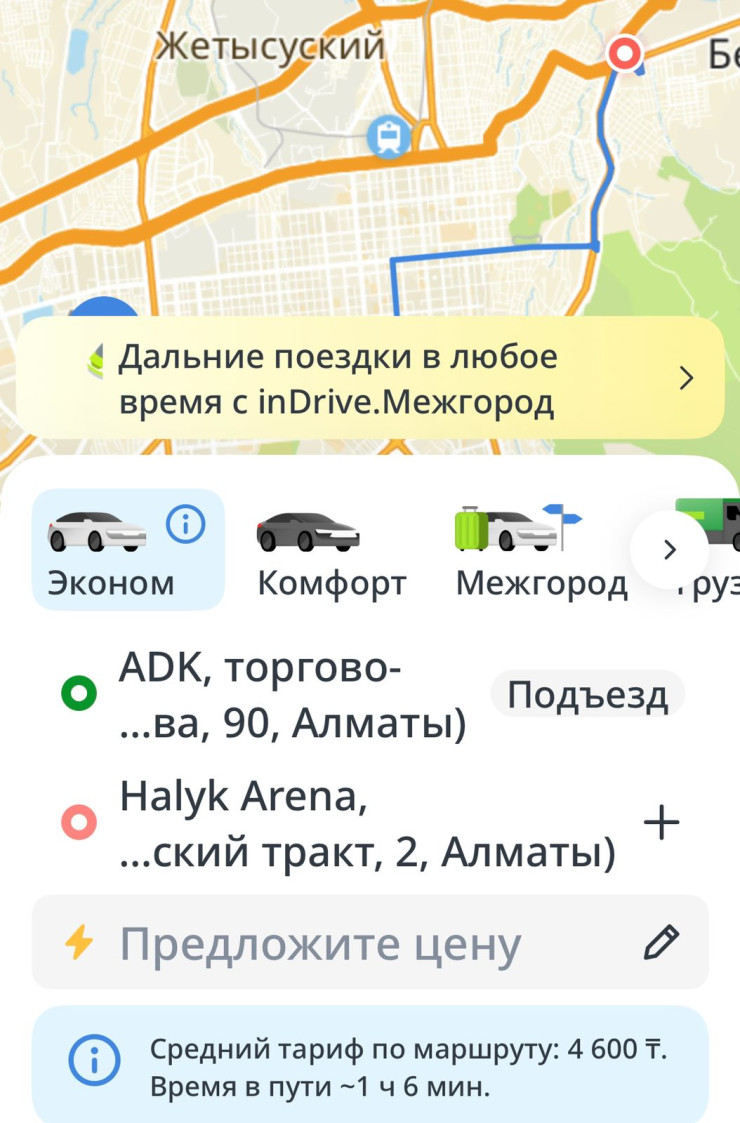 На сервисе поиска попутчиков цены несильно отличаются и также повышены. Эконом будет стоить около 3700 тенге. Но в этом сервисе цены назначают пассажиры, поэтому можно дождаться того, кто согласится отвезти вас за меньшую сумму.