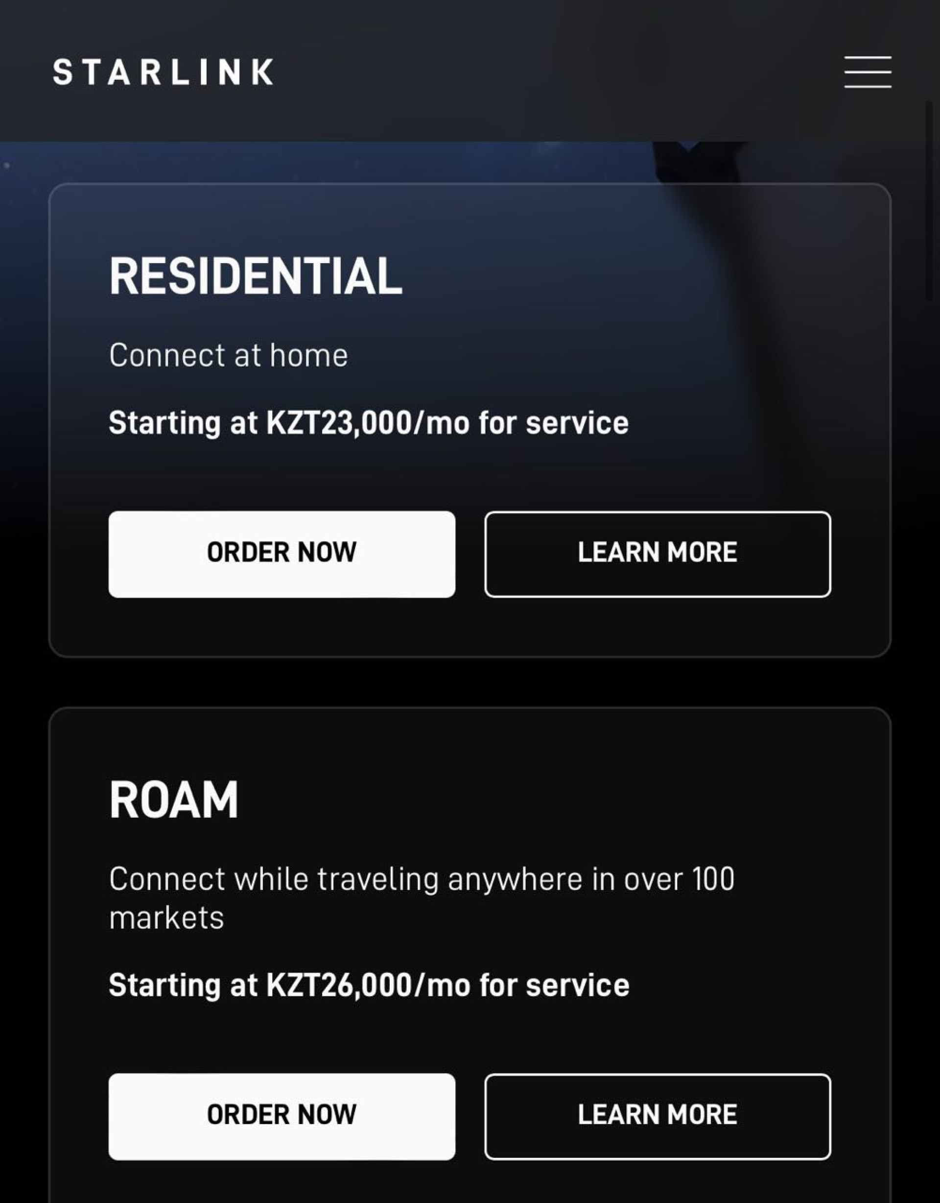 Тарифы начинаются от 23 000 тенге в месяц для домашнего использования и от 26 000 тенге для путешествий (покрытие более 100 стран). В зависимости от пакета стоимость может достигать 52 000 тенге в месяц.