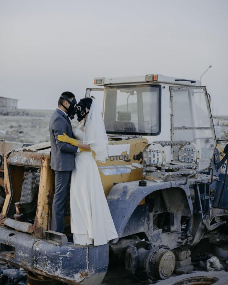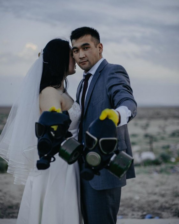 Два брата из Мангистауской области - эколог Нуркен Салиев и фотограф Нурбол Салиев - устроили фотосессию на мусорном полигоне, чтобы привлечь внимание к проблемам экологии и показать людям, как будут выглядеть свадьбы в 2050 году, если человечество не перестанет халатно относиться к природе, передает Tengri Life со ссылкой на "Ладу".