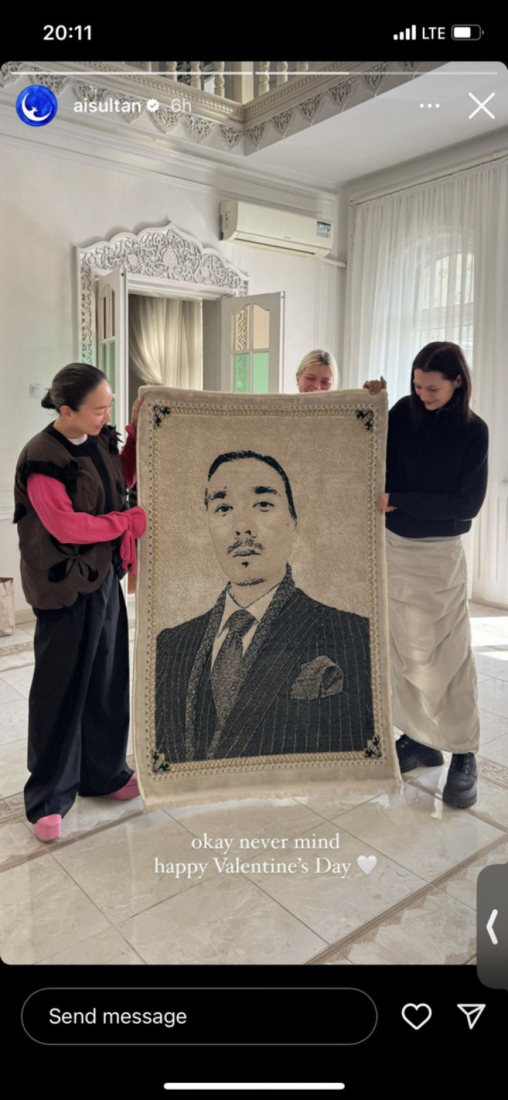 Режиссер Айсултан Сеитов получил самый оригинальный подарок на День святого Валентина в виде ковра со своим портретом.