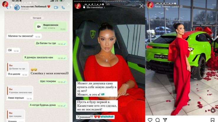 Блогер и модель, известная как Мадлен, опубликовала переписку со своим племянником с планами поесть в этот вечер донер. Позже девушка рассказала, что приобрела новый Lamborghini Urus ярко-зеленого цвета. Стоит отметить, что стоимость автомобиля начинается от 241 тысячи долларов.