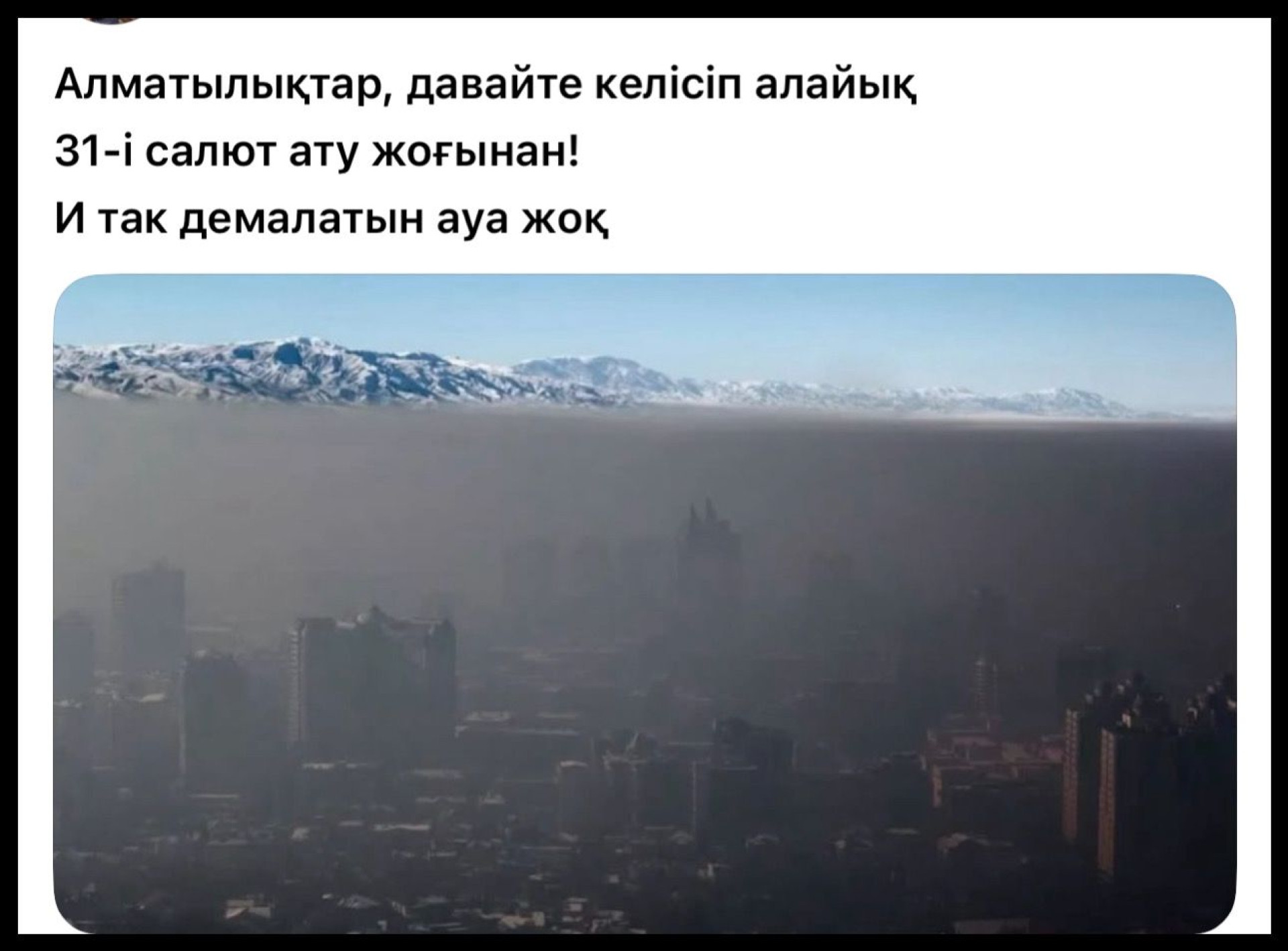 "Алматинцы, давайте договоримся не запускать салюты 31-го! И так дышать нечем", — говорится в посте.