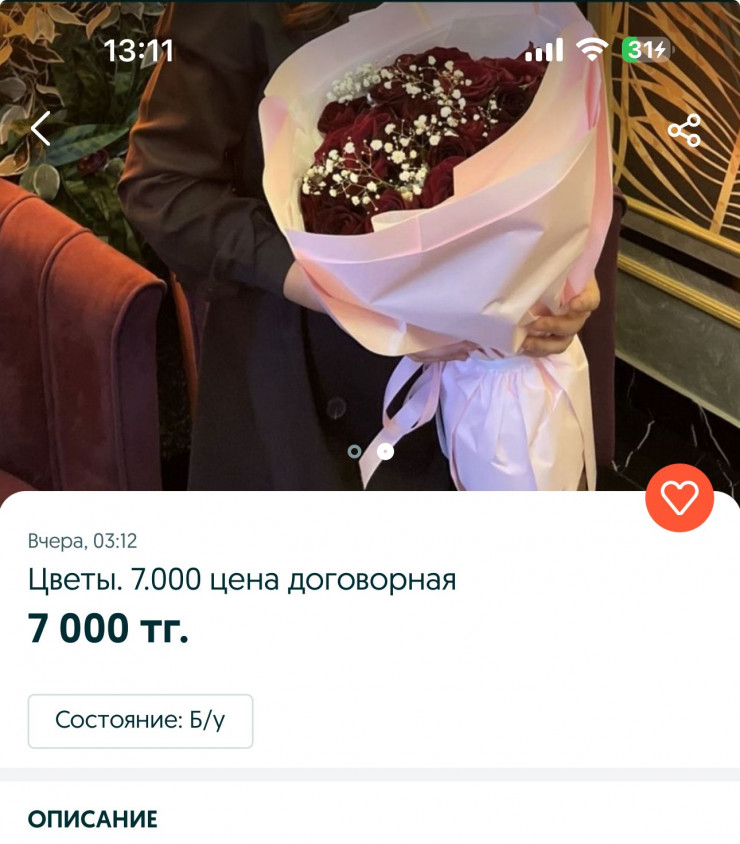 Популярный сервис объявлений буквально заполонили объявления о продаже цветов. Причем букеты б/у, и распродают их девушки после Дня всех влюбленных, прошедшего накануне, рассказывает Tengri Life.