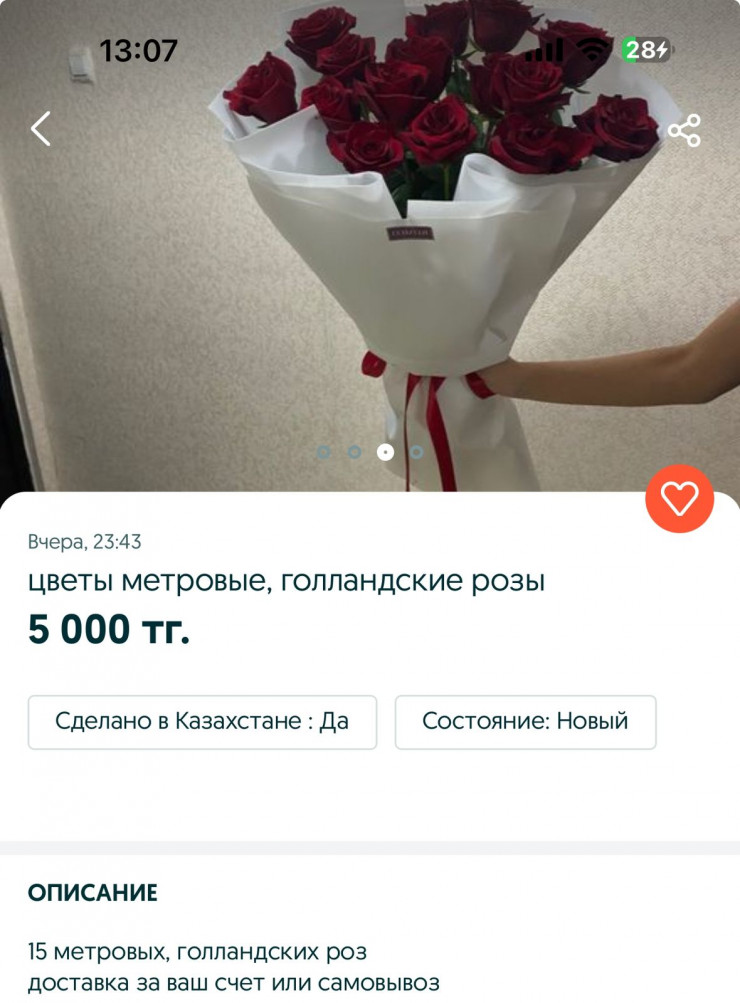 Найти среди объявлений можно и популярный букет из 101 розы. Приобрести мечту многих девушек предлагает астанчанка всего лишь за 5 и 20 тысяч тенге. При этом "цена договорная", то есть сторговаться можно.