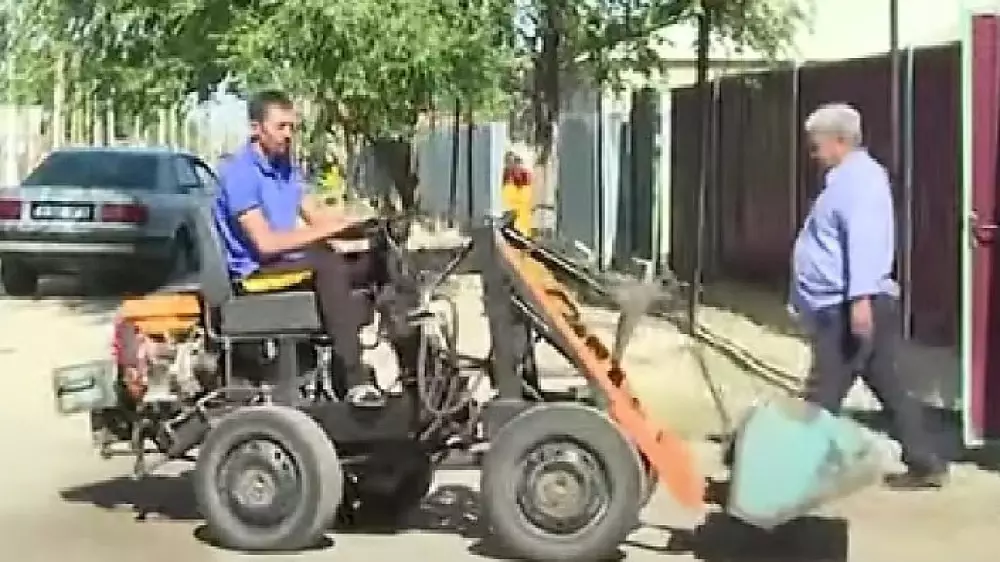 Житель села Аса, Орынбасар Кобеев, по профессии слесарь. Собрать технику своими руками его подтолкнула необходимость. В сельской местности личное подсобное хозяйство есть почти в каждом доме: надо убирать за скотом, собирать сено, копать грядки на огороде. Компактный, маневренный и многофункциональный трактор для такой работы – вещь незаменимая. Но стоит он недешево. Поэтому умелец решил соорудить подобную технику собственноручно. Корпус сделал из металлолома, а части взял из старых автомобилей.