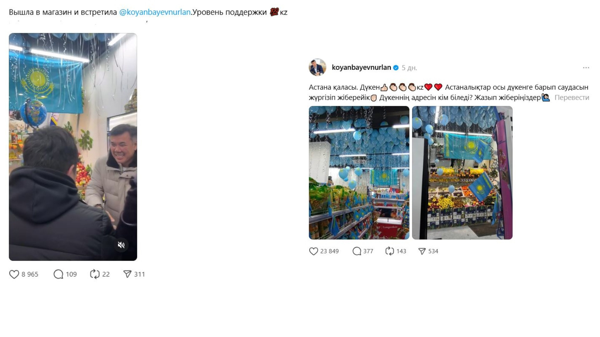 Инициатива получила отклик не только в сети: жители Астаны начали приходить в магазин лично, чтобы посмотреть оформление и поддержать предпринимателя. Как отмечают пользователи сети, внимание к магазину было настолько сильным, что туда приехал и известный актёр и продюсер Нурлан Коянбаев.