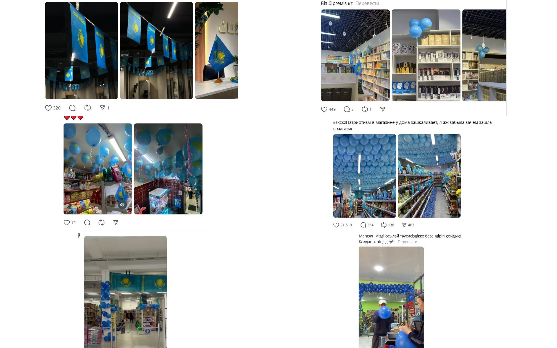 Всё началось с видео из небольшого продуктового магазина в Астане, которое неожиданно стало вирусным и разлетелось по соцсетям. Мини-маркет при одном из жилых комплексов оформили в патриотичном стиле: потолок заполнили голубые воздушные шары, в зале появились флаги Казахстана.