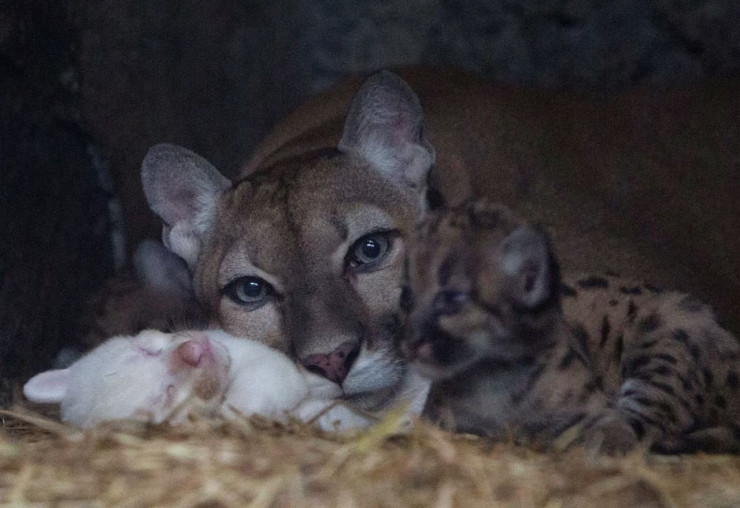 Всего в помете три котенка, другие два бежевые с пятнами. Взрослые пумы уже без пятен, их окрас обычно бежевый или коричневый. Мать с детенышами пока держат в герметичной клетке, чтобы оградить ее от стресса и чужеродных запахов. Если мать перепутает человеческие запахи с запахами котят, она может напасть на них. Отец живет в отдельном вольере, чтобы он не навредил малышам. Посетителям их собираются показать, когда им исполнится три месяца.