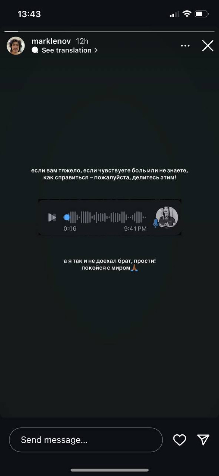 "Плохо? Тяжело? Позвоните просто! Выговори все, что есть! Но ни в чем себя не вините. Мы все люди", – отметил один из блогеров в своих Instagram stories.