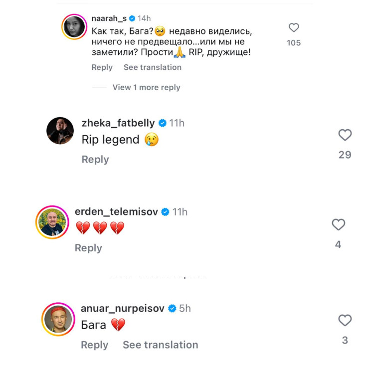 Посты с соболезнованиями и скорбными комментариями появляются и под последней публикацией Баги в Instagram. Многие его друзья и подписчики вспоминают его как жизнерадостного человека, который всегда стремился поддерживать окружающих и дарить радость через свои домашние посиделки.
