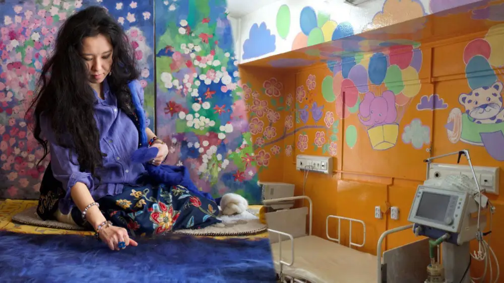 Мы разыскали героиню этой истории и выяснили, что события происходили десять лет назад. Художницу зовут Жанель Жубанова. Во время учебы она общалась с тремя девушками, которые стали известными активистами и волонтерами, – Адель Оразалиновой, Ольгой Аголдиной и Айгуль Абсаметовой. Они помогали онкобольным детям и предложили Жанель поучаствовать в их проекте. Во время каникул художница расписывала стены и потолок в республиканской детской больнице "Аксай" близ Алматы: в приемном покое изобразила город-сад, в реабилитационном отделении – воздушные шары, зверушек, цветы, облака. Чтобы, когда дети приходили в себя, объясняет Жанель, первым делом видели эту красоту и она поднимала бы им настроение.