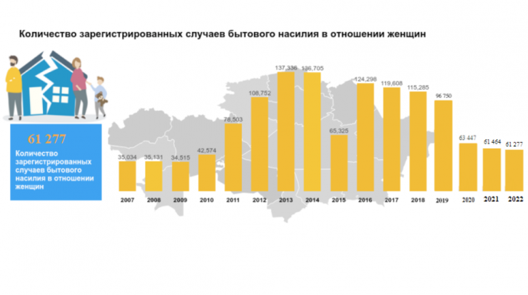Согласно данным Бюро нацстатистики Агентства по стратегическому планированию и реформам, только за 2022 год было зарегистрировано 61 277 случаев бытового насилия в отношении женщин.