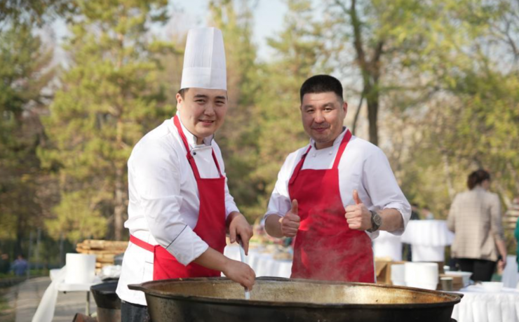 На свежем воздухе повара приготовили плов в казане, а в запеченной тыкве томили сочный куырдак.