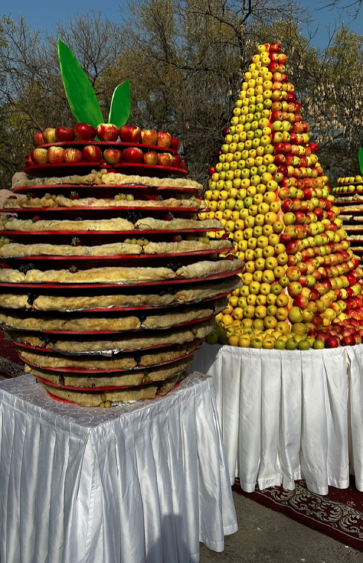 На фестивале гостям удалось попробовать порядка 15 разных блюд, в числе которых были не только угощения из яблок, но и любимые блюда казахской кухни. Для маленьких гостей фестиваля шеф-повары приготовили яблоки в глазури и в шоколаде, пышные слойки, караваи и булочки. Не забыли кулинары и о традиционно-праздничных блюдах.