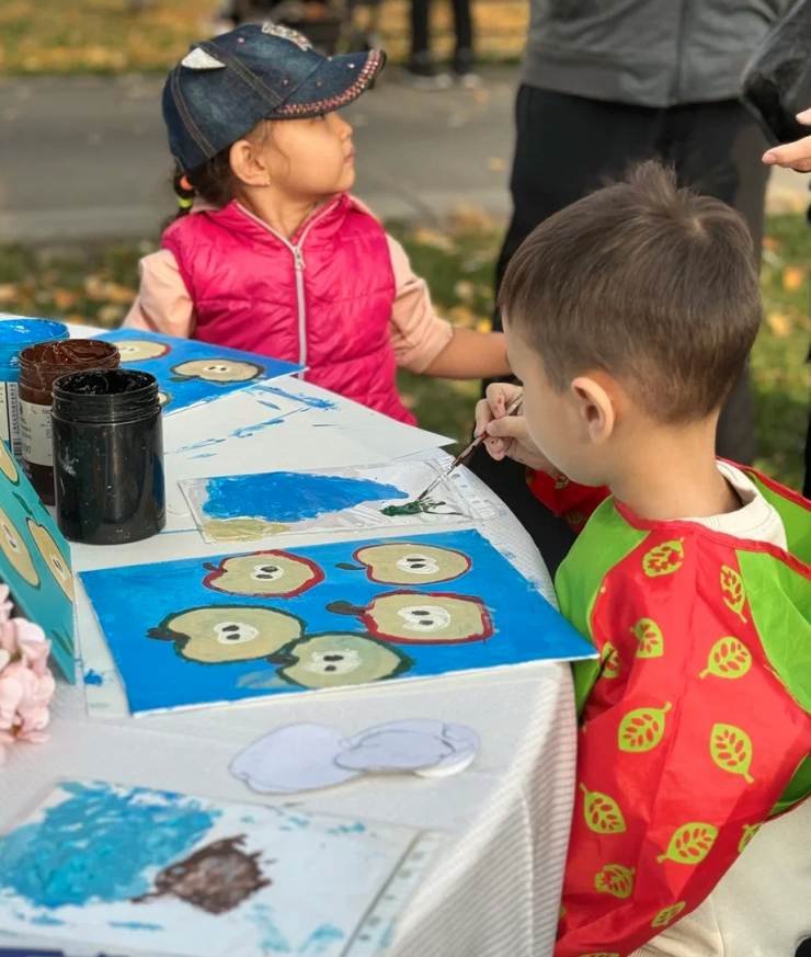 Пока взрослые наслаждались угощениями и концертной программой, маленькие гости фестиваля рисовали собственные картины под руководством профессиональной художницы. Конечно же, в яблочной тематике.