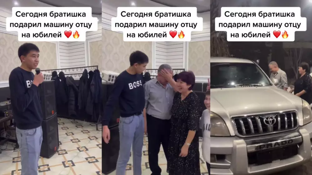 В социальной сети TikTok появилось двухминутное видео, которое до глубины души тронуло многих казахстанцев. Алишер Естайулы подарил на 50-летие отцу автомобиль, чем поразил не только родных, но и казахстанских интернет-пользователей.