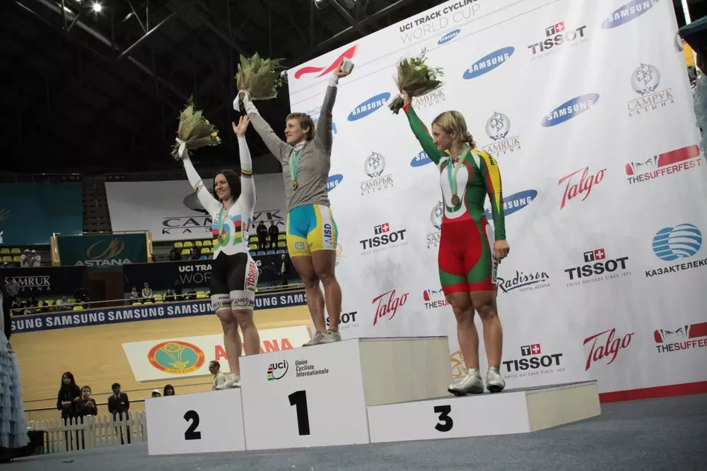 Украинке Шулике не было равных в женском спринте на велотреке Астаны, передает корреспондент Tengrinews.kz со столичного велотрека "Сары-Арка", где проходит первый в этом сезоне Кубок мира по велотреку. В финальном заезде Любовь Шулика показала отличный результат и обыграла олимпийскую чемпионку австралийку Анну Маерс. Финалу предшествовали захватывающие полуфиналы. В первом белоруска Ольга Панарина стартуя в первом заезде с первой позиции не оставила никаких шансов олимпийской чемпионке австралийке Анне Меарес. Однако уже во втором раунде австралийская гонщица восстановила статус-кво и разрешение спора между двумя девушками перешло в третий раунд. Здесь Маерс уже не уступила ни пяди и уверенно финишировала первой. Во втором заезде вице-чемпионка мира Симона Крупескайте из Литвы не смогла одолеть чемпионку Европы украинку Любовь Шулику. Крупескайте попыталась отыграться во втором заезде, однако Шулика, видимо, решила ни за что не отдавать победу и сняла вопрос о том, кто из этой пары будет выступать в финале. В итоге в борьбе за бронзу встретились Крупескайте и Панарина. После скоротечного заезда судьи зафиксировали победу Симоны Крупескайте. Однако, определить победителя во втором раунде смог только фотофиниш. Спортсменки финишировали колесо в колесо. После скрупулезного изучения результатов судьми был вынесен вердикт - победа Панариной. При этом белоруске сделали предупреждение за нарушение правил. И все же перед решающим третьим раундом белорусская гонщица собралась и выиграла бронзу.